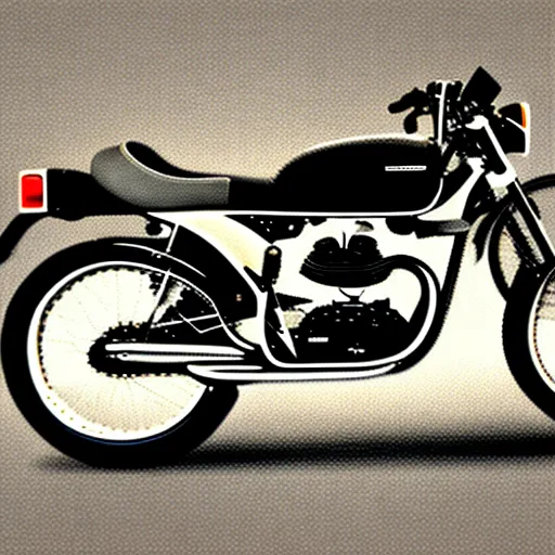 The image radiates an evocative nostalgia as it showcases a veritable symphony of vintage motorcycles. These mechanical marvels, resting against the backdrop of an old brick edifice, embody tales of bygone eras. Bathed in the warm, golden hues of a setting sun, the motorcycles take centre stage in a tableau of timeless beauty. To the left, a vintage British motorcycle, circa mid-20th century, dominates the scene. Its cerulean blue tank is polished to a mirror sheen, reflecting fragments of golden light that dance off its surface. The black leather seat appears distressed yet hardy, inviting passers-by to embark on a journey back in time. Its chrome parts, including the classic round headlamp, exhaust, and handlebars, are polished to a brilliant lustre, providing a striking contrast to the rich blue tank. Fan-like spokes of chrome pierce the monochromatic tyres, merging with the strong steel rims. The motorcycle in the centre sports a vibrant crimson hue, instantly drawing the eye to its visage. It boasts an archetypal teardrop fuel tank that glimmers like a freshly picked cherry, evoking an air of romance and adventure. The boxy leather seat, with its stitching pattern, speaks of countless voyages undertaken, while the compact round headlight and curvaceous mudguards enhance its antiquated charm. To the right is a distinguished two-wheeled icon, its monochromatic colour theme exuding an air of understated elegance. Its onyx black tank and matching fenders are complemented by an almond-shaped, white leather seat. The chrome detailing - the headlamp, exhaust pipes, suspension, and vintage pedals - adds a touch of sophistication, while the jigsaw puzzle of mechanical components beneath the tank tell a story of engineering mastery. Each motorcycle promises an untold narrative of thrill and freedom, a nostalgic tribute to the yesteryears when the world was unhurried and roads beckoned towards unprecedented discovery. Amid a blend of rustic charm and mechanical brilliance, the image strikes a chord in the heart of every vintage motorcycle aficionado.