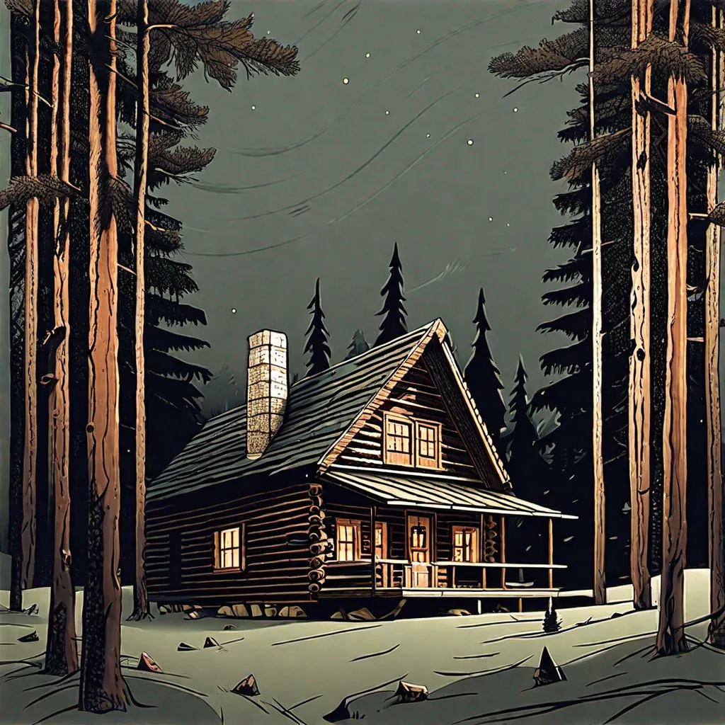 The image presents a tranquil spectacle of a rugged cabin nestled in the heart of an idyllic woodland. A melange of towering trees, predominantly oak and spruce, shroud the scene with their leafy canopies, perforated only by the soft whisper of the moonlight that manages to sneak through. Their autumnal leaves, a breathtaking palette of burnished ochre, fiery red, and copper, cloak the rolling forest floor, creating a rustic bed for the wild, unshackled flora sprouting enthusiastically between them. An olde-worlde wooden cabin sits as the poignant centrepiece within this sylvan setting. Constructed from weather-beaten timber logs, its time-worn visage pays tribute to the many seasons it has gracefully endured. The cabin's moss encrusted tile roof sloping gently, presents an attractive contrast to the robust stone chimney that sprouts from one end, the hint of lingering smoke giving away the cosy hearth that lies within. Opposing the cabin, a crystalline brook snakes its way through the moss laden rocks, the mischief of its gurgling water breaking the serene silence of the woodland. The reflective surface of the waterbody lays testament to the tranquil solitude of the surrounding wilderness, and to the cabin that thrives in it. A rustic stone pathway, punctuated by wooden stumps, connects the cabin with civilization, the path so winding, it seems purposefully designed to keep the chaotic world at bay. Little specks of light scatter across the image from the miniature lanterns hung on the trees, creating sporadic pools of golden light against the shadowy woodland tapestry. In essence, this image of the cabin in the woods encompasses a warmly inviting yet profoundly thrilling depiction of rustic life, suggesting an existence defined by a harmonious alliance with unspoilt nature.